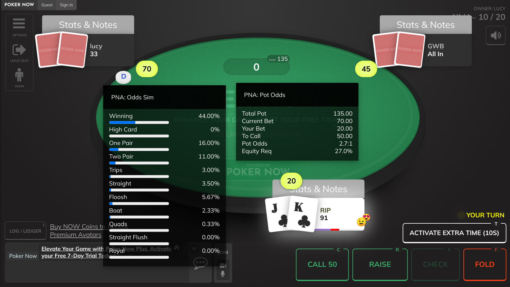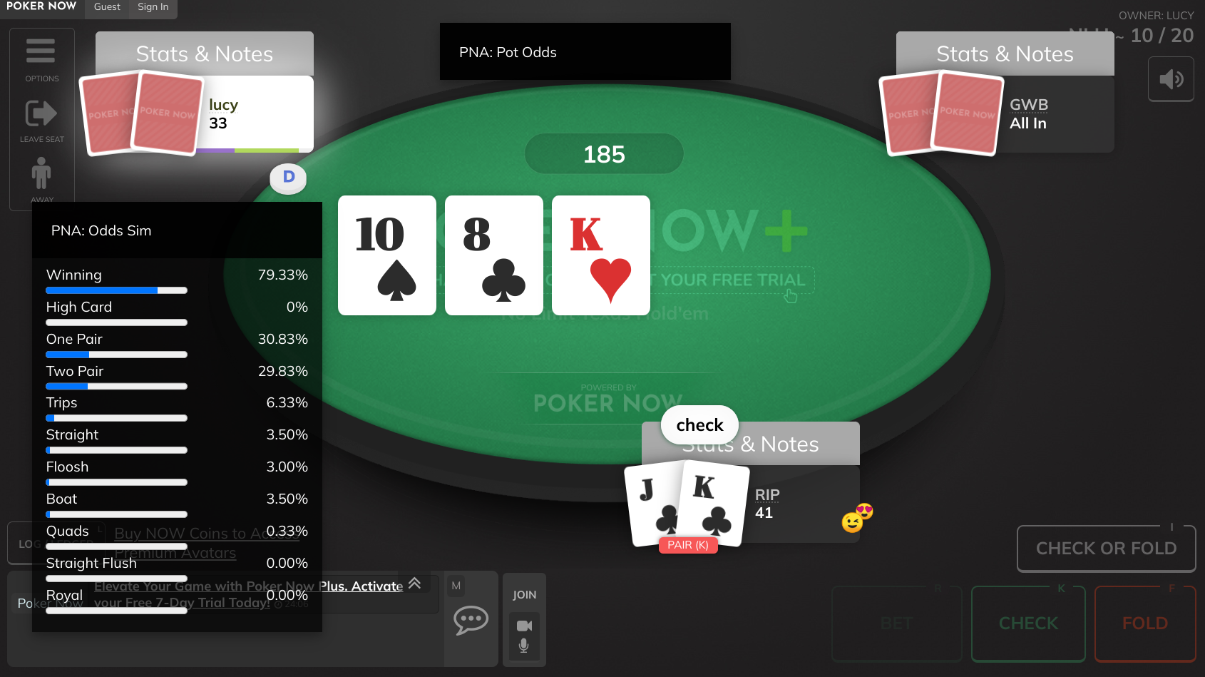 PokerNow is a popular free service created by Samuel Simões where anyone can create a table and play with their friends.